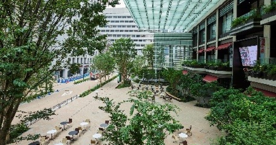 计划积极采用与相邻的日比谷公园相同的树种,并确保绿植在视觉上相连