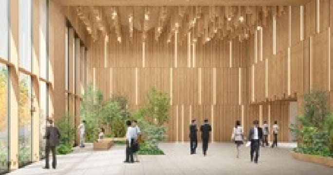日本首个采用木制结构、包含多租户型物流仓库的设施 ,集团所有的森林也被用于构造材料和内饰材料