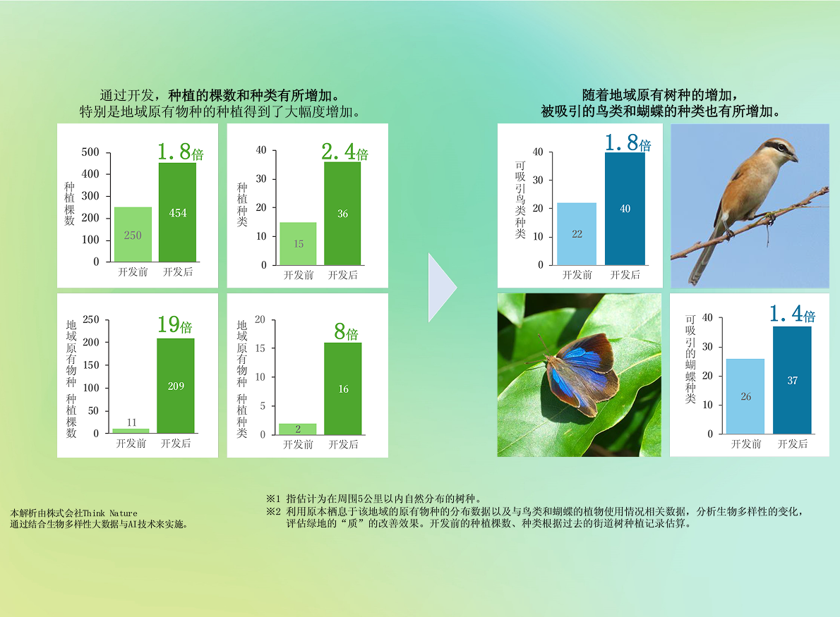 制定了以原有物种为基础的种植计划、以及成为周围动植物的中转地的鸟道计划