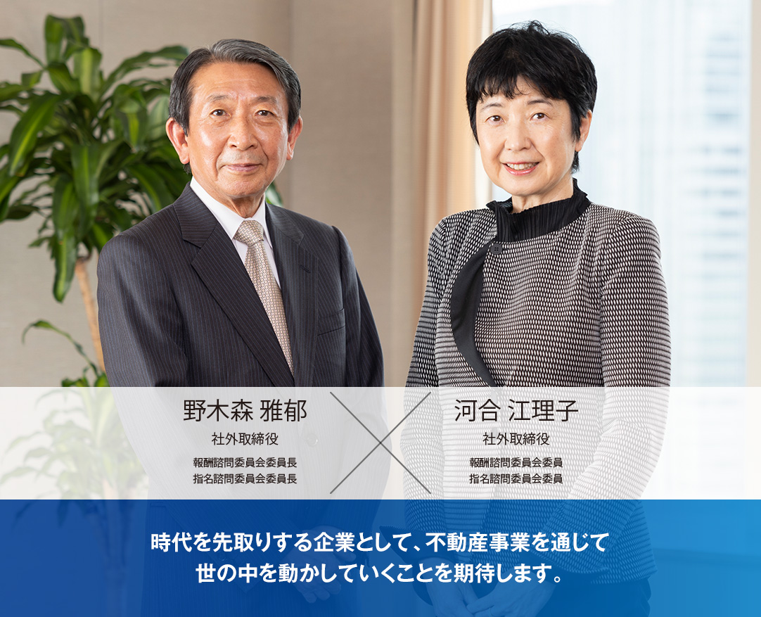 野木森 私も2017年に社外取締役に就任した当時、自分自身が個人で経験した不動産の仲介や販売とは違い、当社においては多岐にわたるステークホルダーとともに、スケールの大きな「街づくり」をベースにした事業を進めている点に驚きました。また、当社には新しいことに積極的に挑戦しようという風土があると感じています。これはコーポレート・ガバナンスにも表れており、就任当時からオープンな会社だという印象がありましたが、オープンネスの度合いはこの数年でさらに進化していると感じます。取締役会議長は取締役会の進行等の役割に加え、自身でも質問をされ、かつ、他の取締役にも質問を促すなど、取締役会で活発な議論が交わされるような進行をされています。また、議案説明の後に社長が補足で説明される場面も多くあります。そうしたところからも、経営者が自ら責任を持ってガバナンスの強化を図ろうとする姿勢が窺えます。