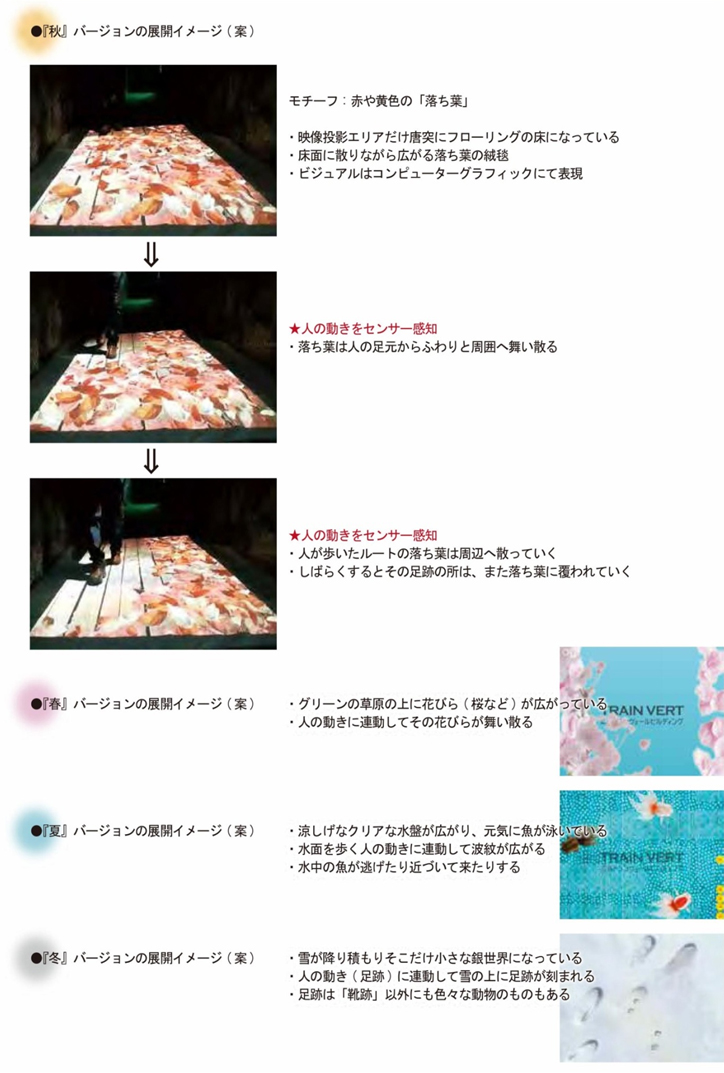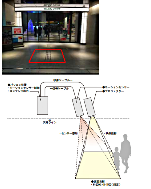 - エントランスには人の動きに反応、映像が動くセンサー反応型プロジェクターを設置し、来訪者に面白さと驚きを提供します。