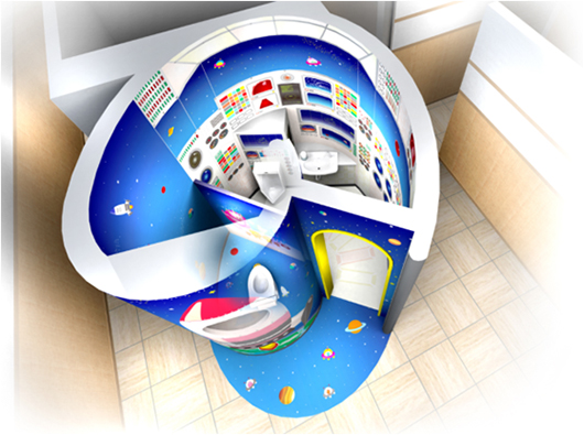 キッズトイレは、ロケットをイメージしたデザインにリニューアル。[ベビー・キッズ関連既存大型店集積]