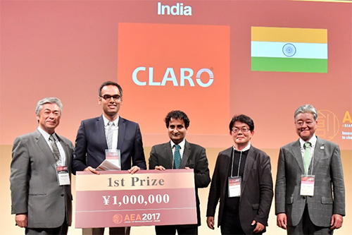 今年で6回目を迎えた「アジア・アントレプレナーシップ・アワード2017(以下:AEA)」は柏の葉キャンパス(千葉県柏市)にて、2017年10月25日(水)~27日(金)の3日間にわたり開催されました。アジアを中心に15の国・地域から選出された技術系ベンチャー21社は、事業の革新性、経済的・社会的影響力、事業の実行力を評価基準に競い合い、今年は、太陽エネルギーを利用した灌漑(かんがい)(※)ソリューションを提供する、インドのClaro Energyが優勝しました。