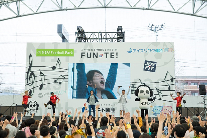 MIFAとは「Music Interact Football for All」の意味で、Mr.Children桜井和寿とGAKU-MCのユニット「ウカスカジー」が所属し、音楽とフットボールを通じて様々なコミュニケーションを創造していくことを目的とした団体です。「MIFA Football Park仙台」は、音楽とフットボールを通して“東北エリアの心と笑顔が通い合う場所”を目指しています。
