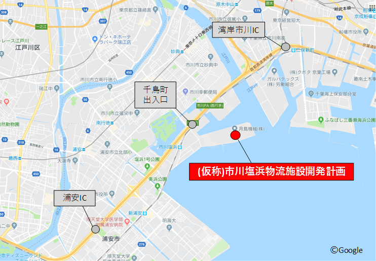 | アクセス | 首都高速湾岸線「千鳥町IC」約1.9km 首都高速湾岸線「浦安IC」約6.2km 東関東自動車道「湾岸市川IC」約5.0km JR京葉線「市川塩浜」駅徒歩約23分 |