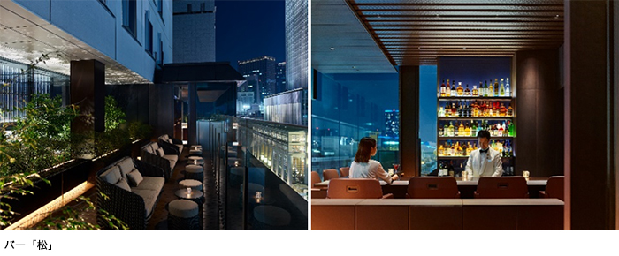「浅田」が初めて手がけるバー「松」が、レストラン「日本橋浅田」に隣接してオープンします。くつろいでお過ごしいただけるオーセンティックな雰囲気で、カウンター席とソファー席では大きな窓から外を眺めながら、テラス席では外の解放感を感じながら、当ホテルのために創作したオリジナル・カクテル「一六〇三(いちろくぜろさん)」を始めとする各種ドリンク・メニューと浅田ならではのフード・メニューもお召し上がりいただけます。店内には、松に因んだ2つのアートを展示しています。フラワーアーティスト東信氏による作品「SHIKI1」、画家アラン・ウエスト氏による絵画も日本橋の夜景とともにお楽しみいただけます。