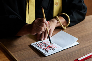 御朱印帳をお持ちの参加者は、体験後、住職より御朱印を記帳いただけます。
