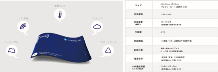 | 概要 | 三重県漁業協同組合連合会との協力で、三崎漁港内の加工工場で魚の切り身に温度トレースタグを真空パックで同梱し、柏の葉スマートシティまでの約120kmの輸送における鮮魚の温度を直接モニタリング。 |