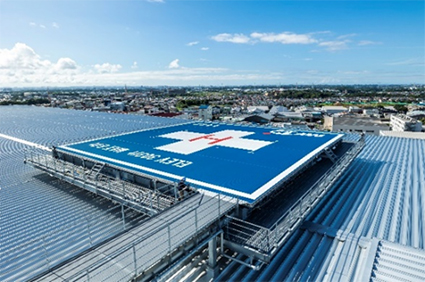 - 綾瀬市との協定締結、東海大学との連携により、物流施設では国内初※1のアルミデッキヘリポートを屋上に設置し、ドクターヘリや消防ヘリによる救命救急に貢献。
