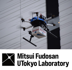 非GPS・屋内環境下におけるドローンの自己位置推定法、安定飛行制御手法を研究。インフラ点検等での活用とともに、人・物と共存するドローンの実現を目指す。 ※東京大学と三井不動産の産学共創協定に基づく「三井不動産東大ラボ」での共同研究 |