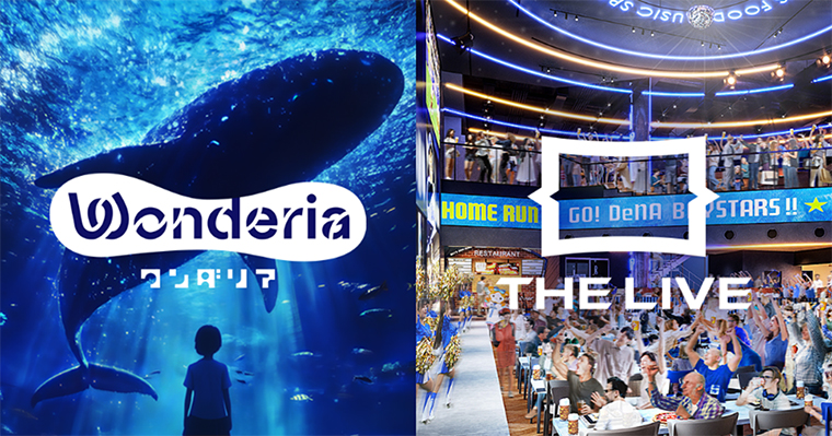 DeNAのエデュテインメント施設「Wonderia」では、プロジェクションマッピングなどの技術によって作られた没入感のある空間を楽しみながら、絶景や未知の生物に出会うことができます。横浜DeNAベイスターズのライブビューイングアリーナ「THE LIVE」には幅約18m、高さ約8mの大型LEDビジョンと高性能の音響設備が設置され、野球を始めとした様々なスポーツの試合や音楽ライブ等のエンターテインメントコンテンツに熱狂しながら飲食を楽しめます。