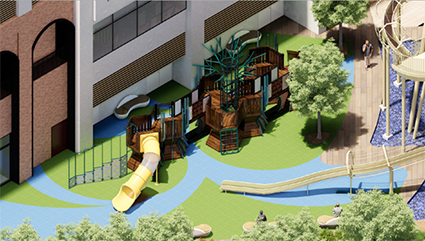 また、既存の屋外広場には、新たな遊具を増設いたします。今まで以上にお子様にもお楽しみいただける空間となり、ファミリーにもやさしい施設づくりを目指します。