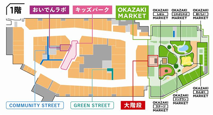 環境デザイン等 | 株式会社スタジオタクシミズ(グランドデザイン・外装デザイン) 株式会社パーク・コーポレーションparkERs(OKAZAKI MARKET外構デザイン) 株式会社ベレッツァ・エスプレッソ(フードコート、OKAZAKI おいしい MARKETデザイン) 株式会社スペース(環境演出企画、地域共生企画) |