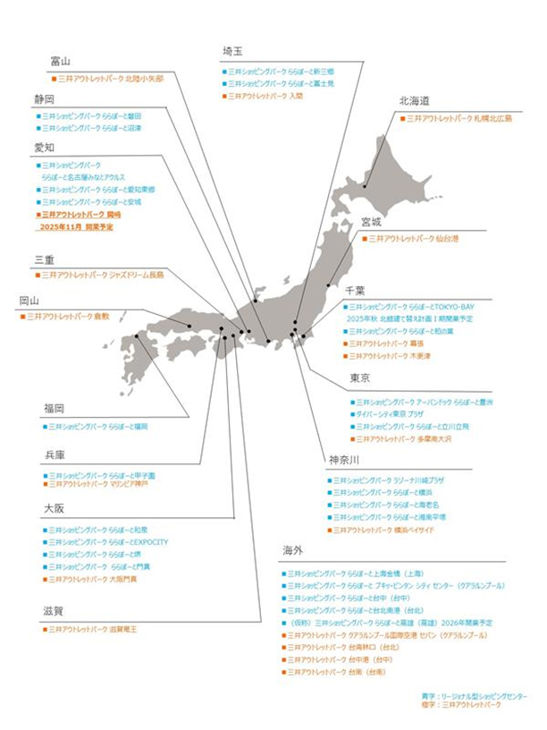 三井不動産のリージョナル型ショッピングセンター・アウトレットモール(2025年9月時点)