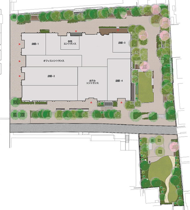 外構空間イメージ(敷地南東よりビル方向を望む)