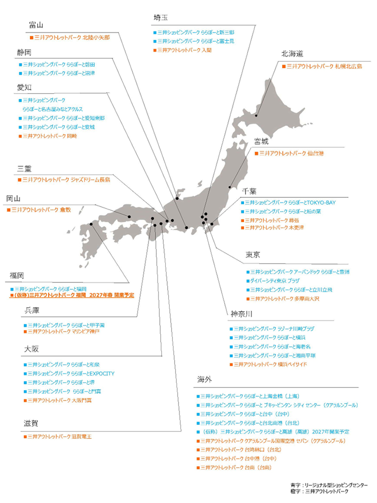 三井不動産のリージョナル型ショッピングセンター・アウトレットモール(2025年11月時点)