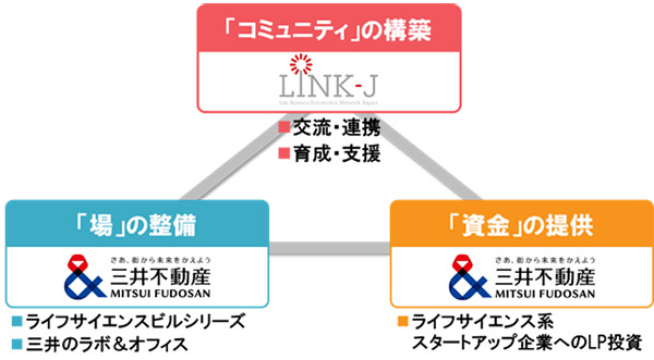 三井不動産が展開する(1)研究・事業サポート、(2)コミュニケーション・ネットワークサポートプログラムです。「LINK-BioBAY TOKYO」の取り組みと連携します。