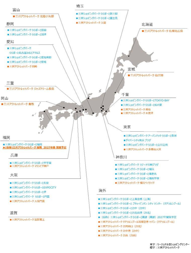 三井不動産のリージョナル型ショッピングセンター・アウトレットモール(2025年12月時点)