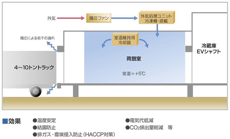 - 高気密な外防熱方式と陽圧空調システム、除湿器の導入により、結露・凍結リスクを低減し、品質管理の信頼性を向上