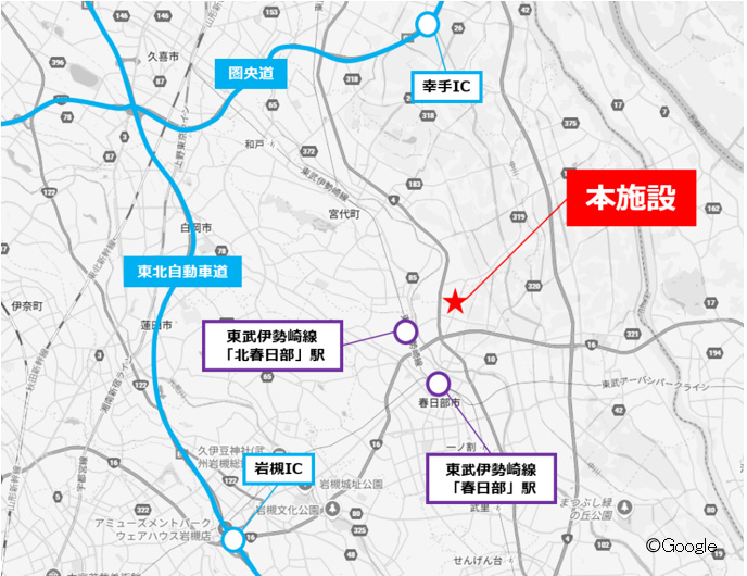- 圏央道「幸手IC」・東北自動車道「岩槻IC」から約11kmに位置し、首都圏全域への配送に適した好立地