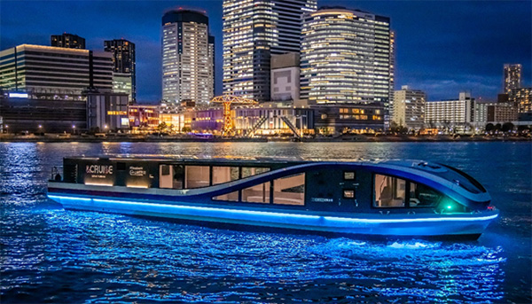 夜の水上体験~水辺の夜景と調和するNihonbashi e-LINERのライトアップ