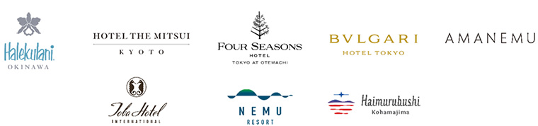 「ハレクラニ沖縄」「HOTEL THE MITSUI KYOTO」「ブルガリ ホテル 東京」