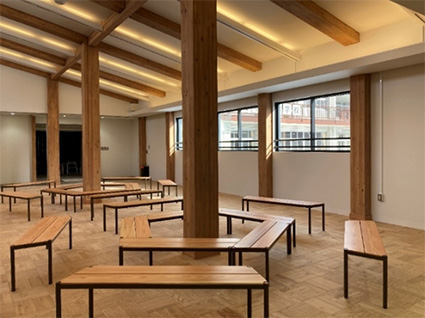 木造建築には、炭素の固定による脱炭素への貢献(本施設の木材使用量は371m3、炭素貯蔵量は294t-CO2※5、スギの木(50年生)は583本分※6)の他、木の空間による心理面や学習面などへの好影響や、ウェルビーイングの向上も期待されています。教育施設での活用も親和性が高いと期待されるなか、桜の聖母学院の事例は教育施設における木造化の新たな可能性を示しています。