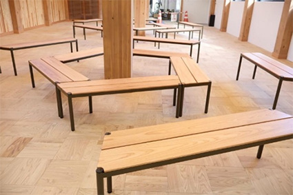 交流ホールにある県産材を使用したベンチ