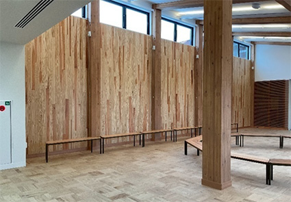 壁面に木質パネリングを使用した交流ホール