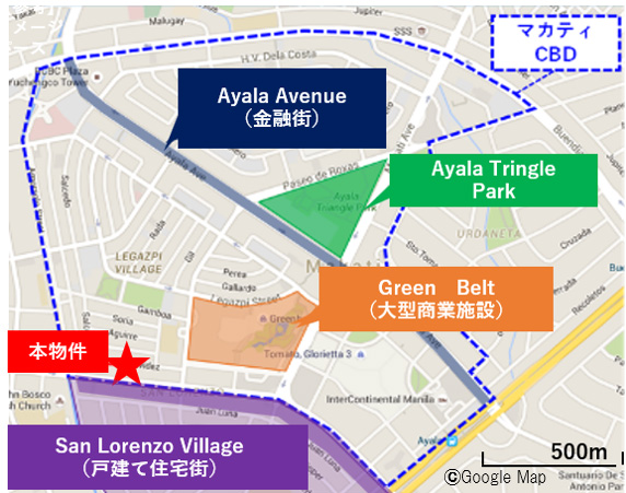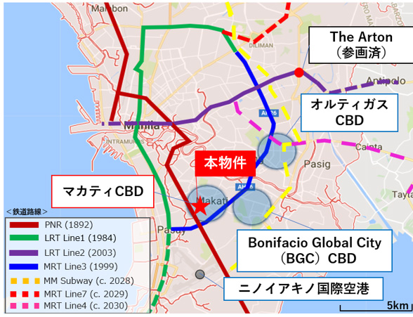 本事業はマニラ首都圏の中心部に位置し、フィリピン国内最大のビジネス中心街である「マカティCentral Business District (以下、「マカティCBD」)」(マニラ首都圏マカティ市)内に所在します。マカティCBD内の住宅供給量は極めて限られており、高い立地希少性を持つ事業です。