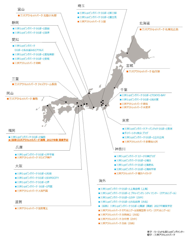 三井不動産のリージョナル型ショッピングセンター・アウトレットモール一覧(2026年2月時点)