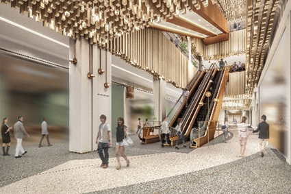 地下1階~3階には、多様な来街者のニーズに応える商業施設を整備し、街区のにぎわいの中心を担います。隣接する日本橋一丁目三井ビルディング(通称:サウス)とは地上2階・地下1階で接続し、東京ミッドタウン日本橋として約20,000㎡の一体の商業施設となります。上質かつ洗練された国際都市にふさわしい新たな商業環境を創出します。