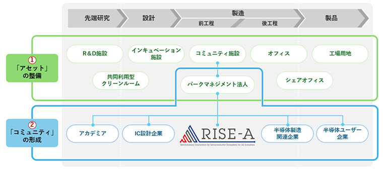 ①R&D施設、インキュベーション施設、オフィス・シェアオフィス、工場用地等、半導体産業に必要な「アセット」を整備