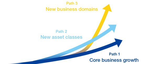 We will achieve growth by following the three business strategy paths of promoting further core business growth, expanding into new asset classes, and exploring new business domains.