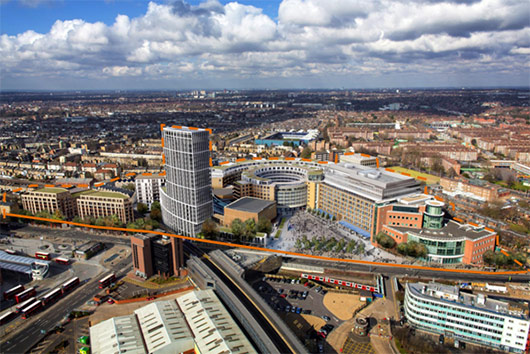 Aerial view of the White City Place