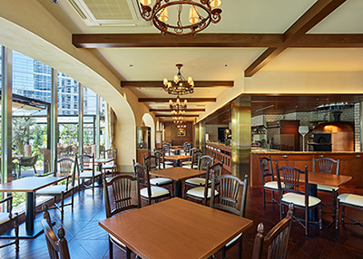 Tanto Tanto The Gardens, an Italian restaurant with a view of the Garden Terrace, offers oven-baked pizza and egg-based dishes prepared in an open kitchen as breakfast fare, in addition to bread delivered directly from Bread&Coffee IKEDAYAMA, an enormously popular bakery in the local Gotanda-Ikedayama area.