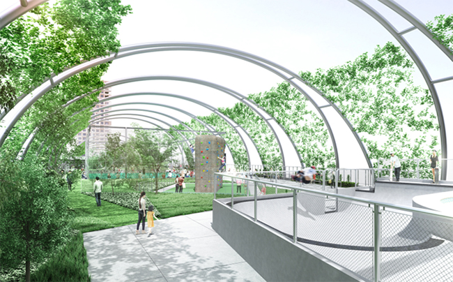 *2 The “vertical urban park system” was established to enable efficient redevelopment of urban parks by defining park areas as a three-dimensional space that effectively uses the land and refurbishing them as a facility integrated with other facilities