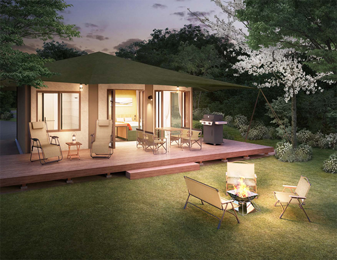 At the newly opened NEMU FOREST VILLA, a brand-new outdoor resort stay featuring a heightened sense of privacy will be offered.