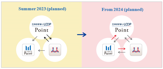 *Mitsui Shopping Park Points cannot be exchanged for Mitsui-No-Sumai Loop Points or MGH Rewards Club Points. - From 2024 (planned)
