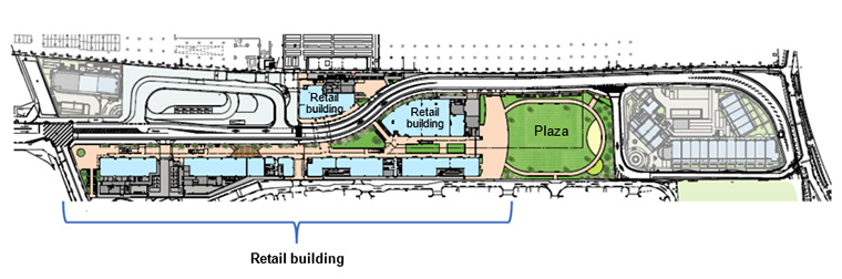 This facility will feature not only various stores but also a grassy plaza with a wide view of the sky, an information center, and area management facilities, as well as events such as food festivals held on the grassy plaza.