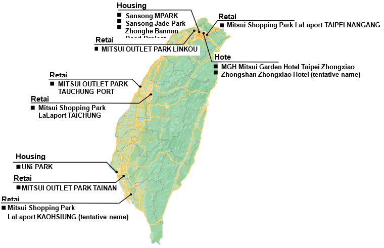The Company has developed commercial facility projects in Taiwan’s three major metropolitan areas (Taipei metropolitan area, Taichung metropolitan area, and Tainan metropolitan area). This Facility follows on from Mitsui Shopping Park LaLaport TAICHUNG and will be the second LaLaport in Taiwan. Combined with Mitsui Outlet Park, it will the fifth commercial facility. Going forward, the Company will develop additional attractive projects in Taiwan.