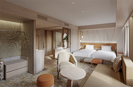- To meet the needs of groups and families, the number of twin and triple rooms will be increased, and new quadruple rooms will be introduced. The number of guest rooms accommodating three to four guests will expand significantly from 20 to 140. In addition, all guest rooms will feature newly upgraded bathroom facilities.