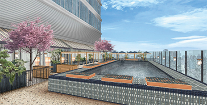 - 14th floors including members-only spaces including the club bar and Tokyo’s first roof terrace outdoor swimming pool, as well as 42 bedrooms in four categories.