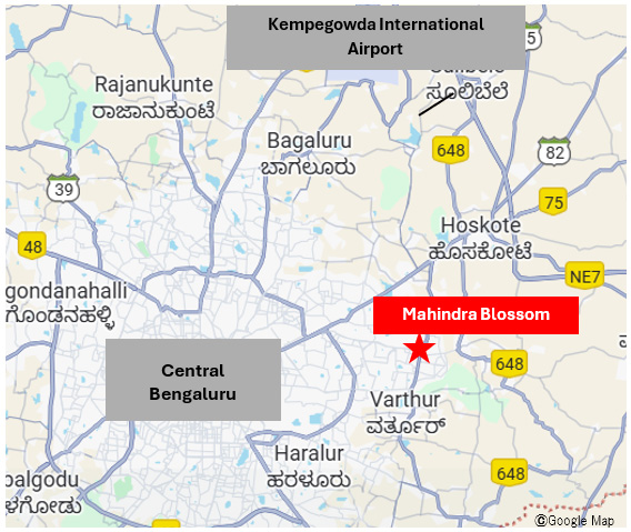 The Property is located in the Whitefield area of eastern Bengaluru, approximately 17 km from the city center. Whitefield is one of the city’s leading tech hubs, home to a concentration of global IT companies and multinational corporations, and is a popular residential area supported by well-developed commercial, educational, and medical infrastructure.
