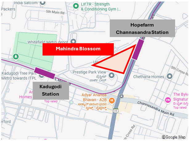 | Access | Strategically located abutting Hopefarm Channasandra Station on the Metro Purple Line |