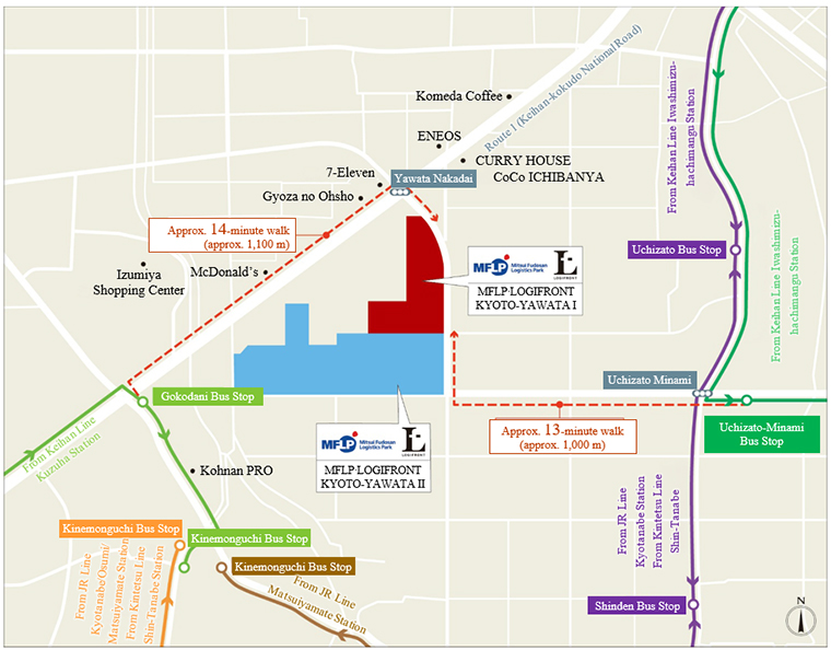 Following Facility 1 construction, the commencement of construction for MFLP · LOGIFRONT KYOTO-YAWATA II (a four-story building with dual vehicle ramps; site area: approximately 848,356 ft2 (approximately 78,815 m2); total floor area: approximately 1,738,240 ft2 (approximately 161,488 m2)) (hereafter “Facility 2”; “the Facility” refers to Facilities 1 and 2 collectively) is scheduled for October 2026. MFLP · LOGIFRONT KYOTO-YAWATA will be a large-scale logistics hub with a two building total floor area of over approximately 2,583,336 ft2 (240,000 m2).