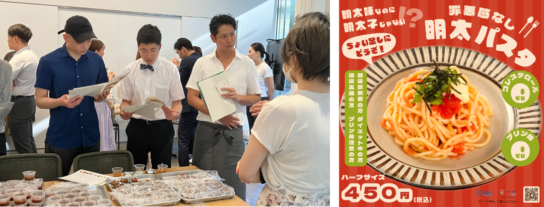日本橋のレストラン「食の會 日本橋」でも、植物由来の素材を使用した明太子風ペーストを使った「明太パスタ」の提供を実施。街の飲食店での提供を通じて、認知獲得と販路開拓の機会を創出しています。